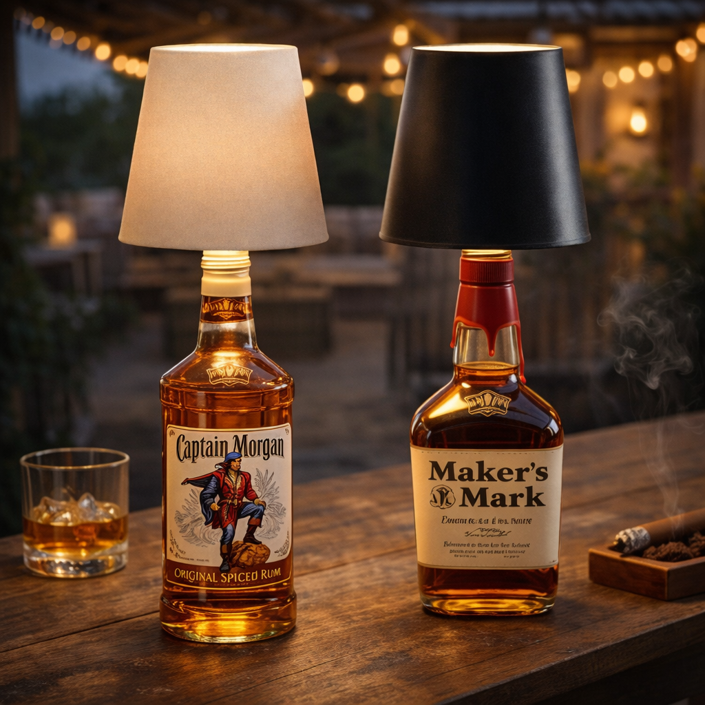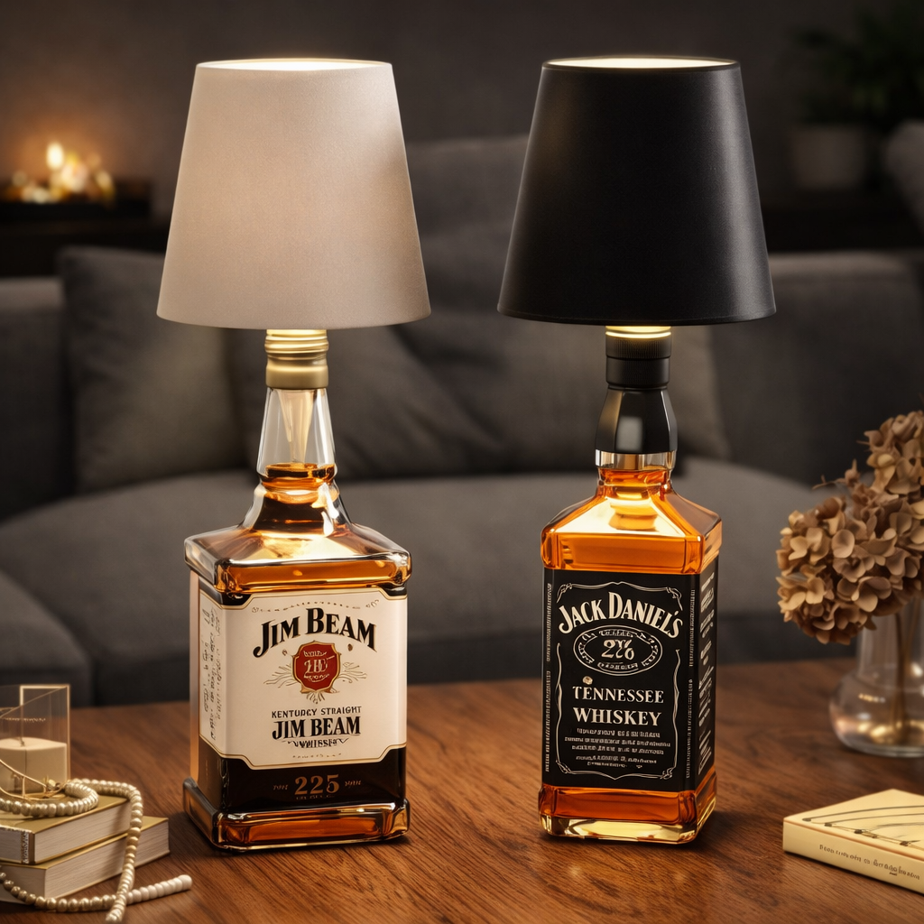 Farklı karakterlere sahip iki el yapımı şişe masa lambası, modern yaşam alanlarına güçlü bir stil dokunuşu katar. Jim Beam ve Jack Daniel’s şişelerinden üretilen bu dekoratif lambalar, sıcak ışıklarıyla salon, ofis veya kafe ortamlarında hem dikkat çekici hem de işlevsel bir ambiyans aydınlatması sunar. El yapımı detayları sayesinde her biri benzersizdir.
